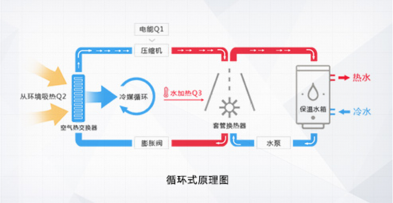 格力空氣能熱水器,傳承空調核心科技,以消耗一部分電能為補償,通過熱力循環,從周圍環境的低品位能源(空氣源)取得熱量,通過壓縮機將其輸送至冷凝器,釋放給水箱內的水將其加熱。它的工作原理與空調制熱時的原理相類似,只是空調是 從自然環境中吸取熱量,供給室內空氣,而空氣能熱水器是以這部分熱量加熱生活熱水,其能效比是電熱水器的4倍,是燃氣熱水器的5倍,是太陽能熱水器的近2倍,是一種新型的高效、節能、環保的熱水器產品。一度電的付出,4倍熱量的收獲!